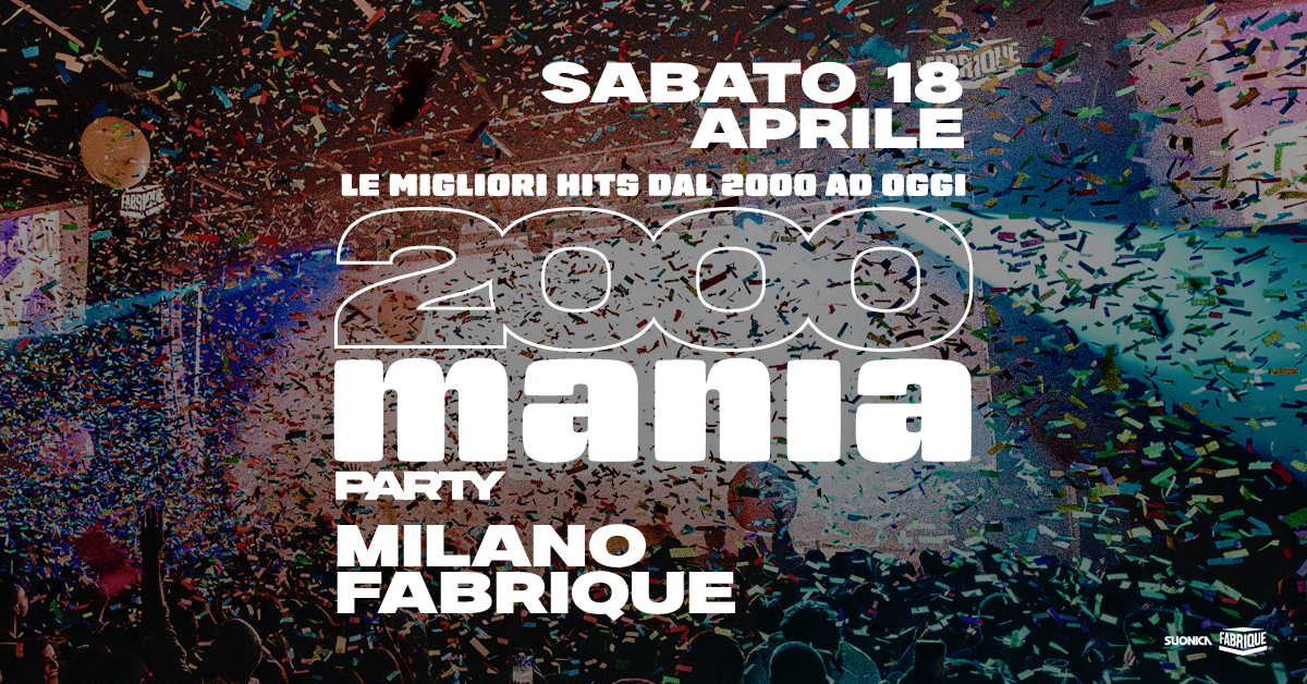 Sab 18 AprileFabrique • Milano Ven 01 MaggioBloom Venice Festival • Parco San Giuliano Venezia Sab 09 MaggioHall • Padova Sab 09 MaggioNew Age • Treviso Hai bisogno di informazioni suun evento già in programma?Chiedi informazioniVuoi organizzare 2000 Manianella tua città?Scrivici